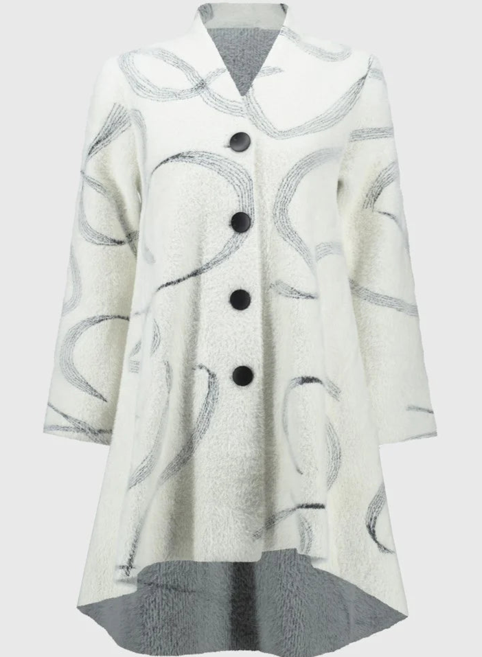 Abstract Jaquard Sweater Coat by Joseph Ribkoff - White with pale black