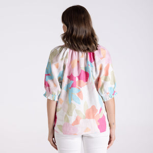 Gorgeous and versatile, this keyhole top with a flattering hemline and sleeve is sure to be your go-to this Summer