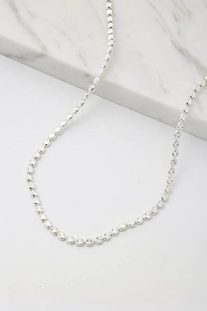 A versatile and stunning accessory that adds a touch of elegance to your neckline. This necklace features a disk pendant with delicate engravings, creating a beautiful and intricate design. Its disk detail adds a modern and stylish element to the piece, while the necklace's length makes it the perfect layering companion. Whether worn alone for a minimalistic look or layered with other necklaces for a fashionable statement, the Belle Necklace effortlessly enhances your style.