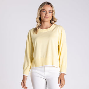 This boxy knit features a relaxed fit that offers effortless comfort and a modern silhouette. The subtle contrast hem adds a refined touch, elevating the design with understated elegance. Perfect for layering or wearing on its own, it combines style and ease for a sophisticated wardrobe staple.