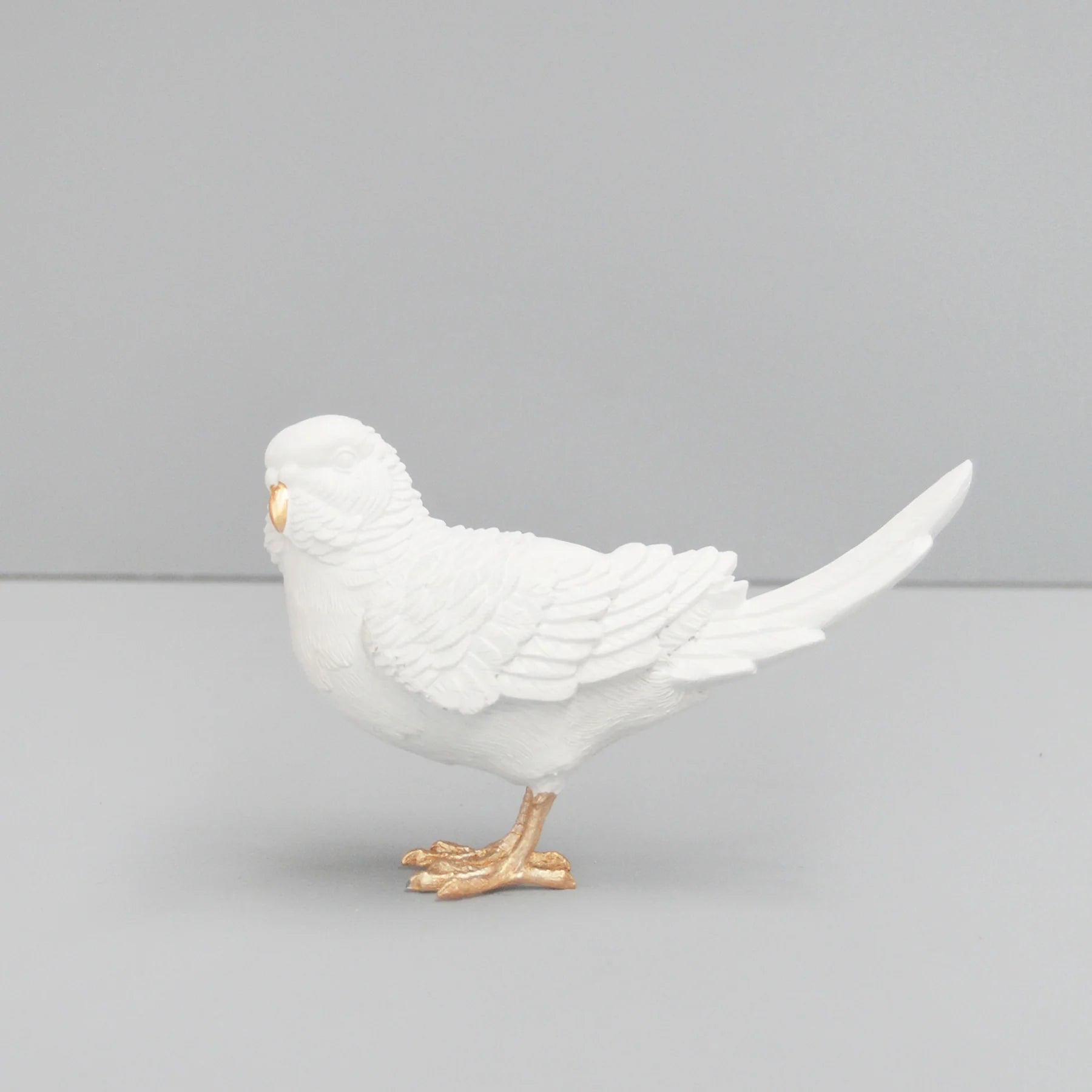 Looking for unique homewares? The Budgie Sculpture by White Moose blends charm with sculptural detail for a playful addition to any space. Made from quality resin and finished in matte white with luxe gold accents on the beak and feet, this decorative bird adds a soft, modern aesthetic to shelves, bedside tables, or coffee tables.