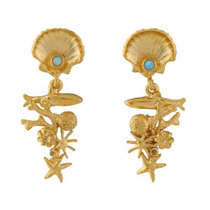 Coral Reef Opal Drop Earrings by Alex Monroe - Gold Plate
