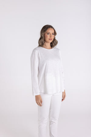 Crew 7/8 Sleeve Tee w/Pocket by Two-T's - White