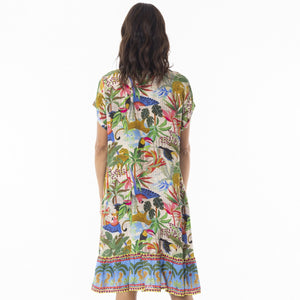 Discover the magic of the heart-stealing Dani Short Sleeve Frill Dress. Featuring Amazonian flora and fauna print, flattering triangle panels at the bust, shirring at the back, maxi length skirt, and frill hem, this dress is a classic silhouette. The gorgeous colours and prints makes this dress the perfect option for any occassion this summer!