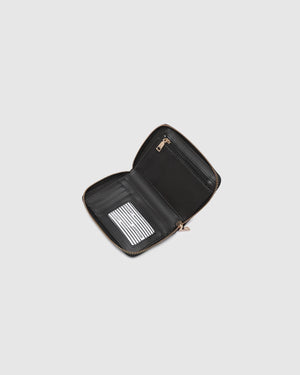 The Eden Black Wallet is a small wallet for women who value effortless style, everyday function, and secure organisation. Crafted from buttery soft vegan leather, this compact companion features seven card slots, a spacious note compartment, and a zip coin pocket - keeping your essentials neatly in place. Designed as a secure RFID blocking wallet with a wristlet, Eden Black offers peace of mind and hands-free convenience, whether you’re running errands, travelling light, or heading out for the evening. Finished with a detachable wristlet and sleek silhouette, she’s the perfect balance of practicality and polish.