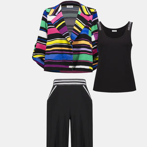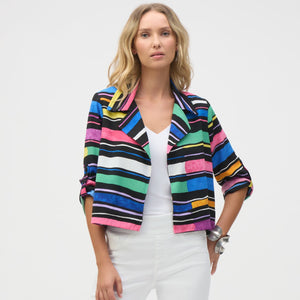 Gauze Stripe Print Short Boxy Blazer by Joseph Ribkoff