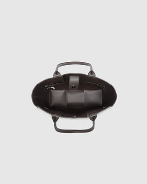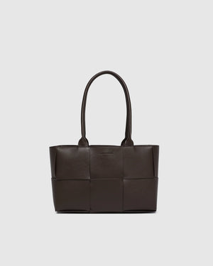 The Gwen Handbag brings quiet confidence to your everyday style — structured, textural, and effortlessly composed. Designed in a clean, tailored silhouette, this woven shoulder bag showcases smooth vegan leather and is finished with dual top handles for a refined touch. Compact yet considered, Gwen Chocolate offers just the right amount of space for your daily essentials, secured with a discreet magnetic closure for ease and peace of mind. Her woven detailing softens the structure, creating a thoughtful balance between grounded texture and elevated design. Equally suited to weekday plans and weekend errands, Gwen Chocolate’s timeless silhouette works hard in any wardrobe.
