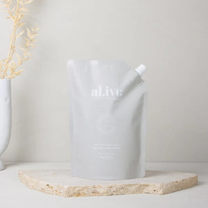 Our refill pouches are designed to refill your existing al.ive kitchen bottles whilst helping to reduce the amount of plastic used. Our refill pouches use 85% less plastic and refill your 300ml al.ive body bottle three times.