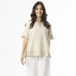 Linen essentials top frill by Orientique - Sand