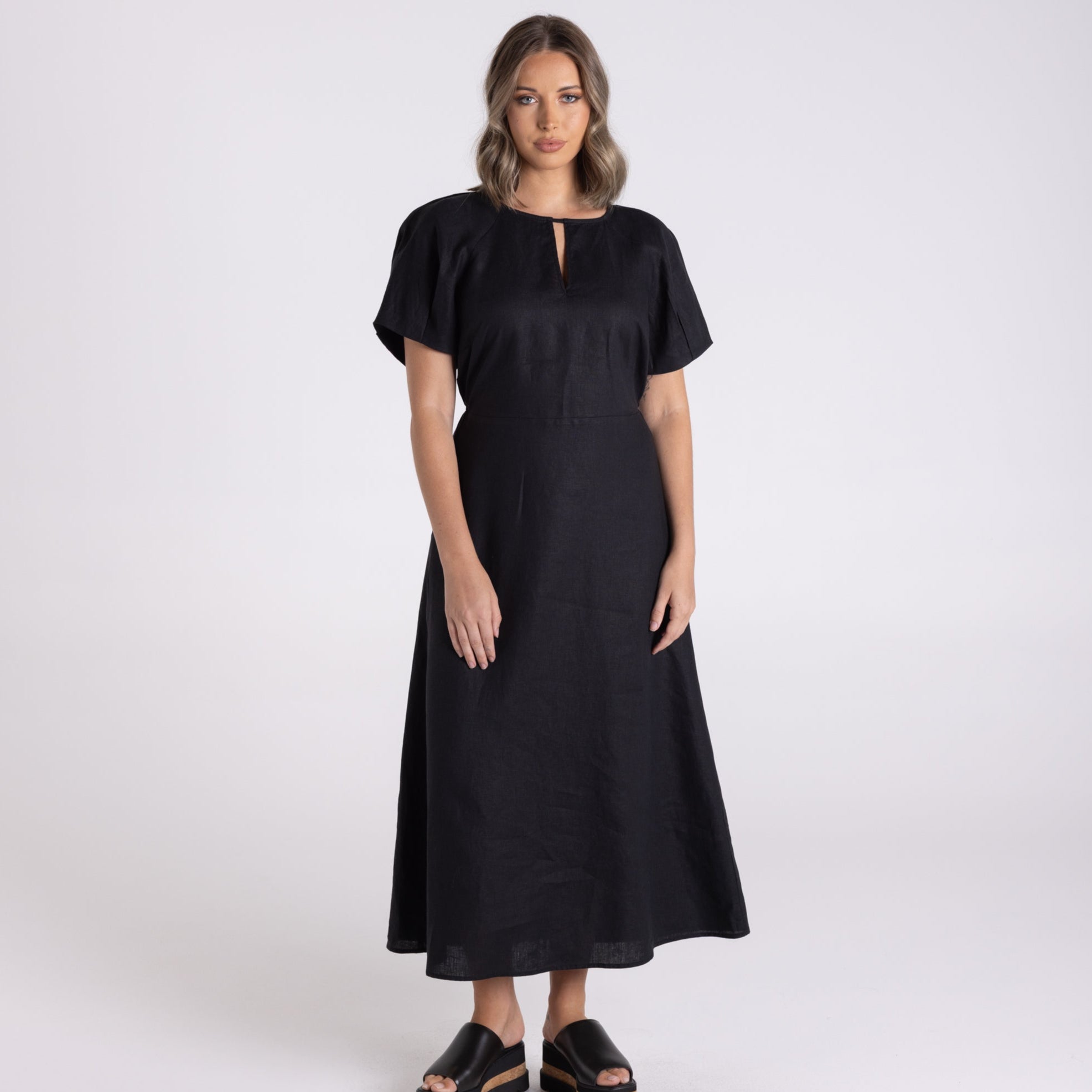 This elegant linen midi dress features graceful puff sleeves and a delicate keyhole front, combining classic charm with modern sophistication. Its flattering midi length offers a refined silhouette perfect for both daytime events and evening occasions. Crafted for comfort and style, this dress is an effortless choice for a polished, timeless look.