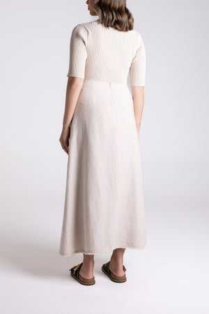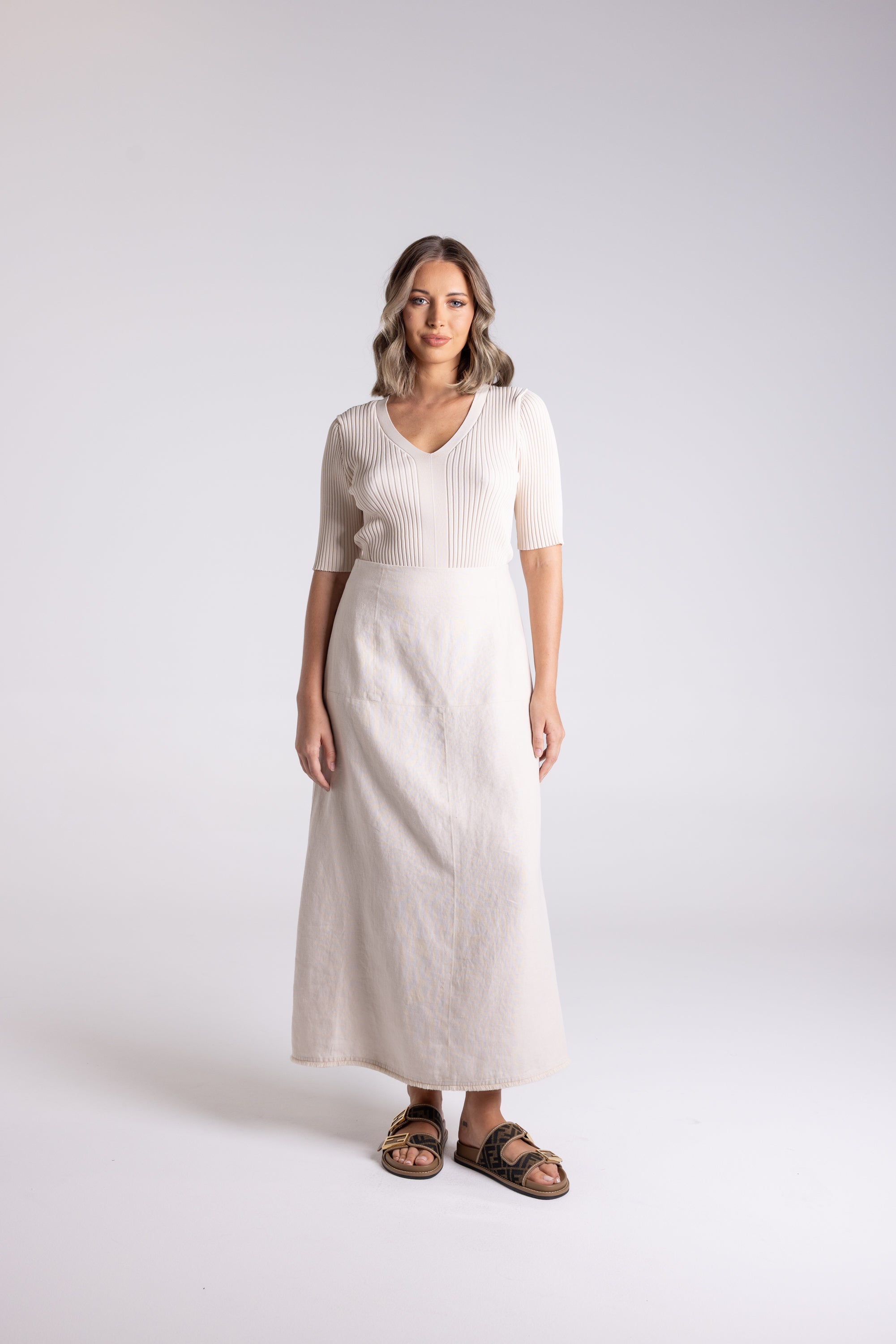 Linen Tweed Midi Skirt by Two-T's - Natural