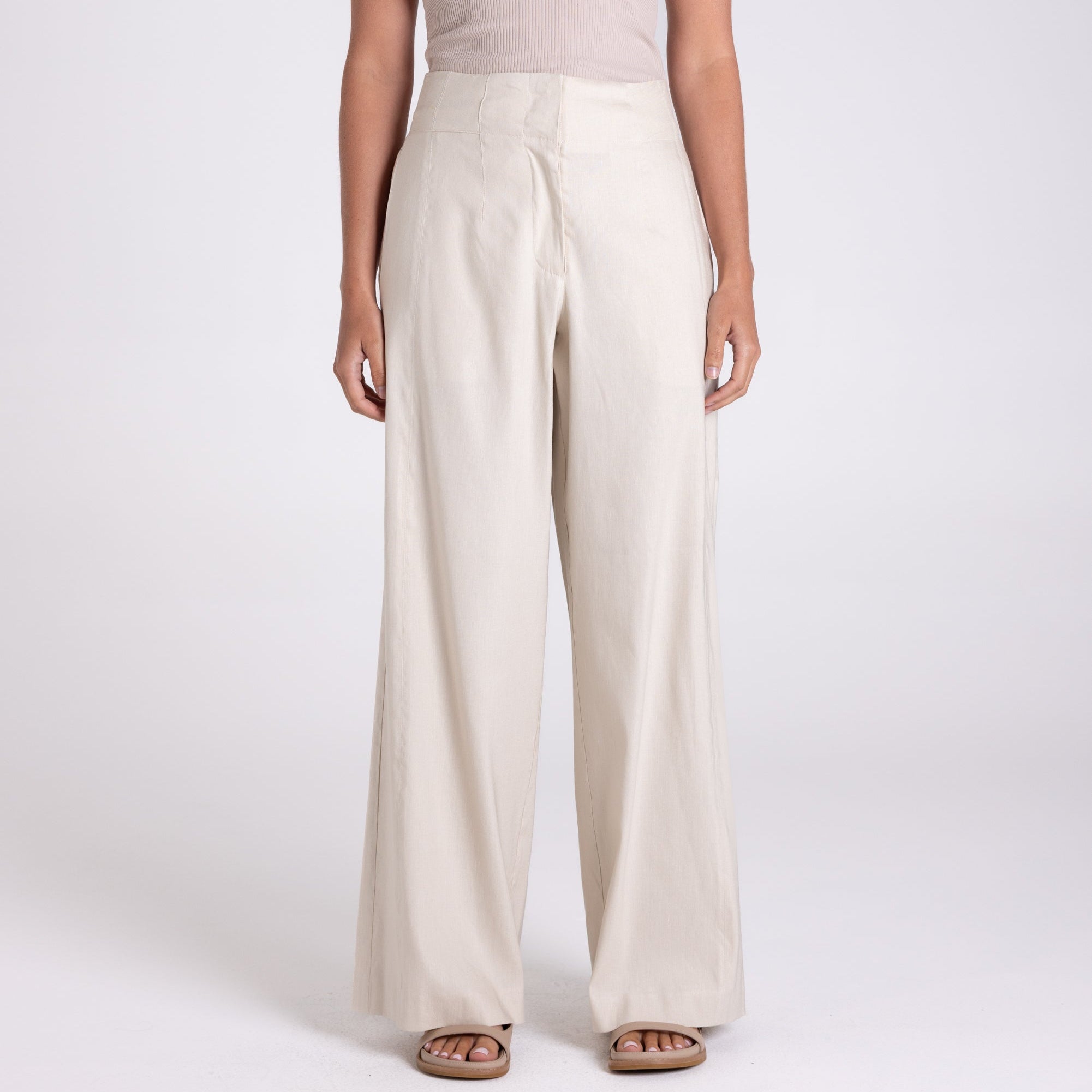 Linen Viscose Wide Leg Pants by Two-T's - Natural