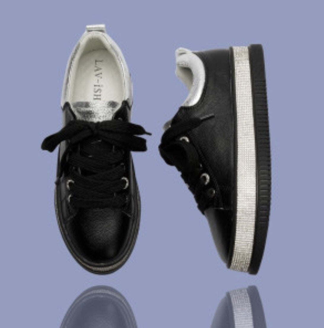 Lav-ish Luxury Bling Leather Sneaker with bling trimmed rubber sole. Extremely sparkly! and ever so comfortable.