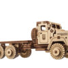 This tough, three-axle, flatbed military truck is Ukraine strong, built for on- or off-road frontline service in the toughest conditions of snow, ice and mud. Whether it's towing artillery pieces, carrying a pontoon bridge, removing debris or fitted out for troop transport, this truck gets the job done. Our DIY wooden model has spinning wheels, a hood that opens, and a spare tire and fuel can mounted on the cab. Laser engraved details include a trident on the cab door, national symbol of Ukraine's strength, freedom and indomitable spirit.