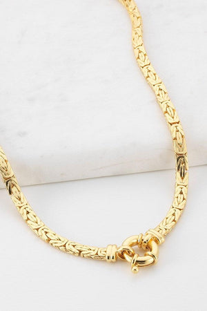 Introducing our best-selling Natalie Necklace, a statement piece that exudes timeless elegance. Crafted with meticulous attention to detail, this necklace features an intricate and thick chain design that instantly captivates attention. Its centerpiece is a beautiful clasp positioned at the front, adding a unique and stylish touch to the overall design. The combination of its bold design, superior craftsmanship, and striking clasp detail makes it a standout accessory for any occasion.