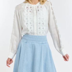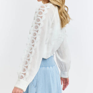 A beautiful top with lace embroidery detail on the front and down the sleeve