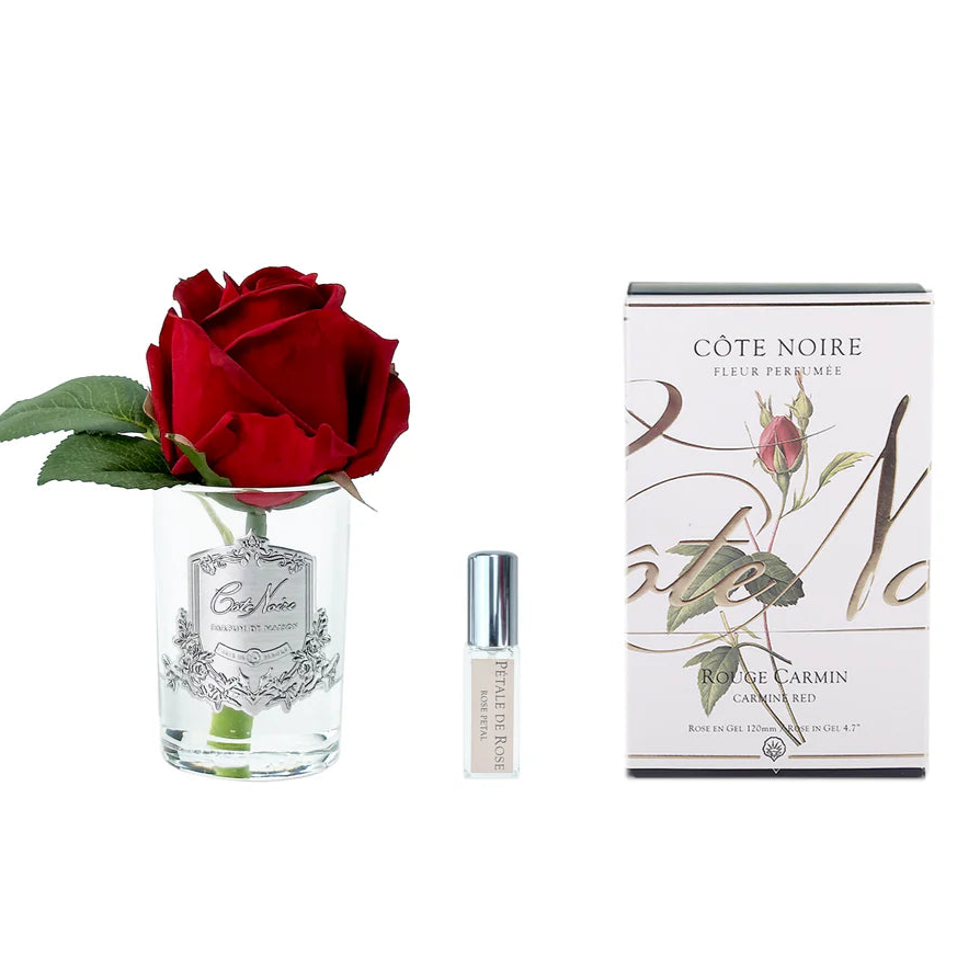 Rose Bud Clear Glass Silver Crest by Cote Noir- Carmine Red