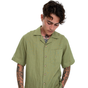 Seaside Linen Short Sleeve Shirt by Lost in Nowhere -Olive
