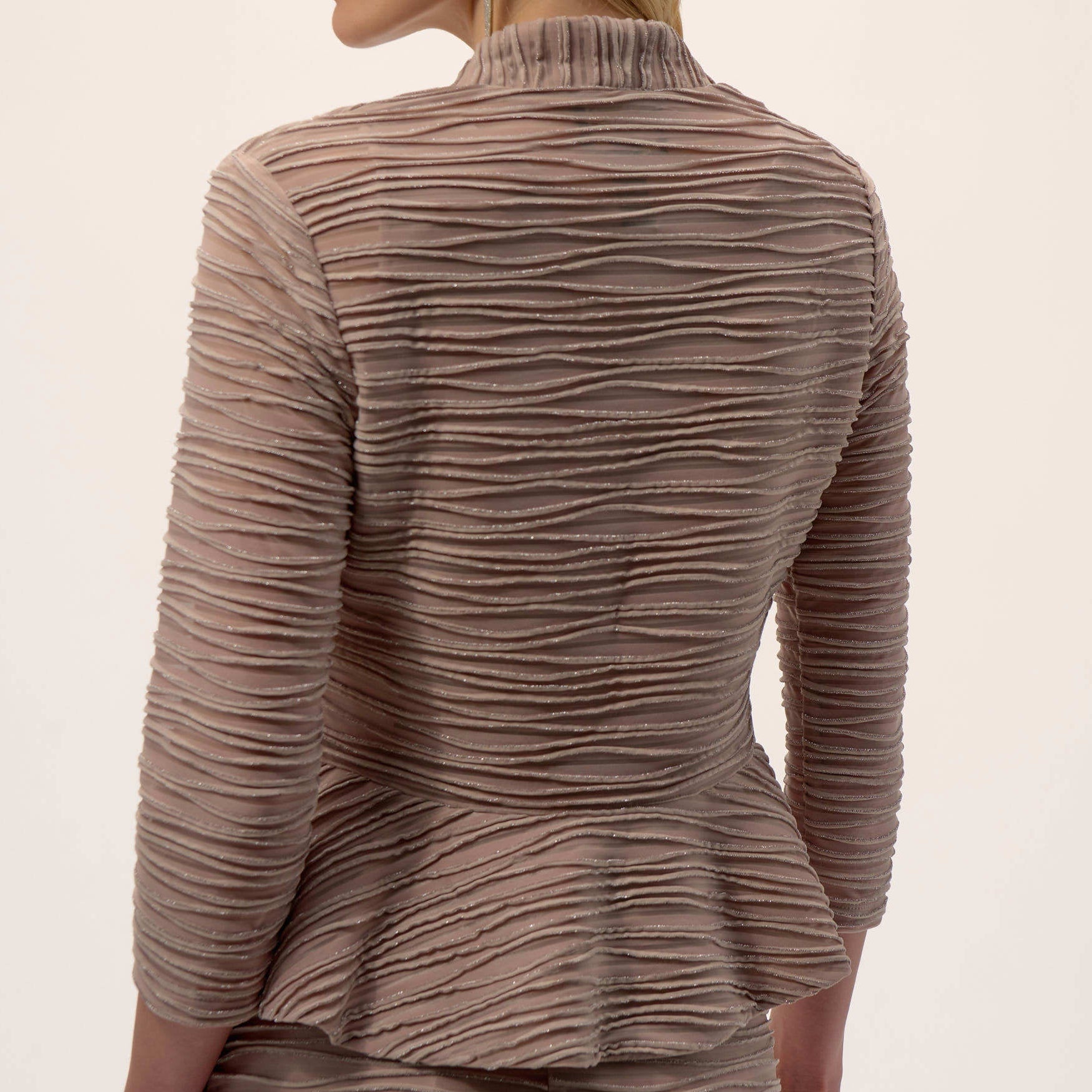 Elevate your wardrobe with this sophisticated lurex cascade knit duo, combining effortless style with refined elegance. The chic cover-up, featuring a graceful shawl collar and peplum hem, pairs beautifully with the matching camisole, designed with a flattering scooped neckline for a polished finish.