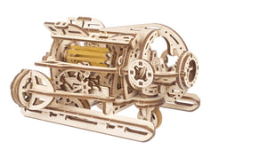 Ever imagined freely exploring the undersea realm in your personal submersible? Glide weightlessly past coral reefs and vibrant marine life, immersed in the aquatic environment. The bubble-domed acrylic cockpit offers unobstructed views without scuba gear. Sink into your leather seat, savoring tea while Saint-Saëns’ “Aquarium” plays. Suddenly, a large shadow appears. Steering the sub, your headlamps reveal an 8-foot reef shark gliding by. Join the voyage of imagination with Ugears Steampunk Submarine!