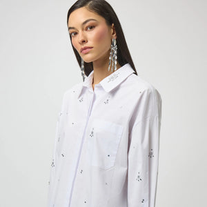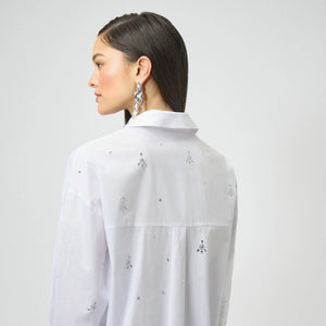 Stretch poplin boxy blouse with Rhinestones by Jospeh Ribkoff