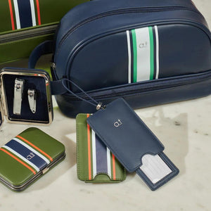 Add some style to your luggage with our vegan leather luggage tags. Attaches easily to the handle of your suitcase or brief case. Includes quick elastic pull-out identification card. Match with other stripe items for the perfect gift.