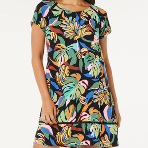 Effortless summer style defines the Sunset Luau Shift Dress with its soft woven construction and all-over yardage print. Featuring crochet trim detail, a relaxed shift silhouette, and a softener wash for extra comfort, the dress is finished with a metal logo trim for a refined touch.
