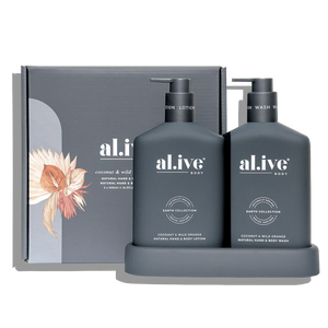 The al.ive body Coconut & Wild Orange Hand & Body Wash/Lotion Duo contains a luxurious blend of naturally derived ingredients, fortified with essential oils and native botanical extracts.