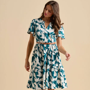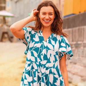 Stay cool in hot days with our Woodland Leaves Knee Length Dress. The striking print makes a statement while the frilly neckline draws eyes to the details. With pockets and a relaxed fit, it’s the ideal dress for a day down the beach. Pair with flipflops and a cross-body bag.