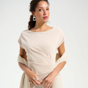 Woven Pleated Rectangular Scarf by Joseph Ribkoff - Champagne